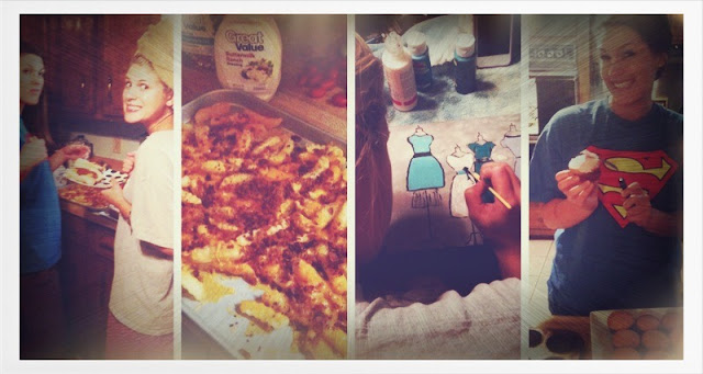 There was bacon cheese fries_ painting_ sewing _and cupcake baking going on.